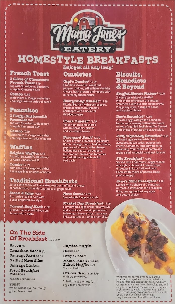 Nestled in Bradford, PA, Mama Jane's Eatery offers a menu brimming with homestyle comfort food that embodies warmth and familiarity. The all-day breakfast features a standout Steak & Eggs with an 8 oz. strip steak paired with eggs cooked to your liking, served alongside your choice of pancakes, French toast, or fresh-baked muffins.